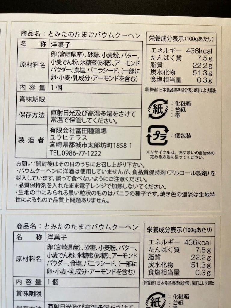 卵とバター。ユウヒテラスのバウムクーヘンはとてもシンプルです。
